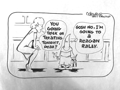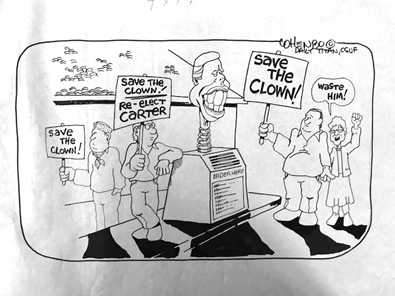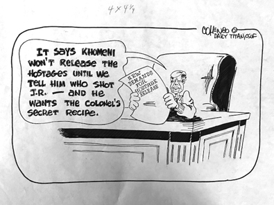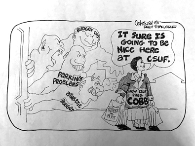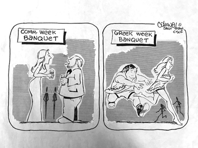 These cartoons appeared in the Daily Titan in the late 1970s and early 1980s, reflecting some themes that still seem current today and others that recall a bygone era.