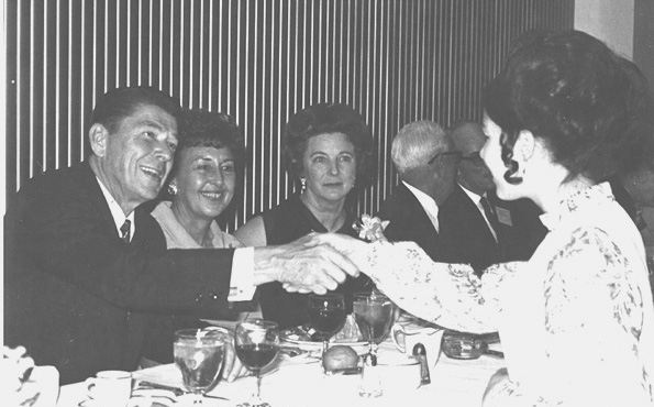 Stiles greets Gov. Ronald Reagan at the 1969 CNPA convention in San Francisco.