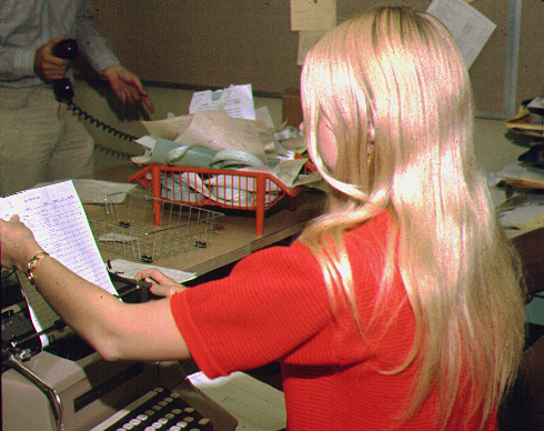 Next, the "slotman," Lynn O'Dell, working at a traditional U-shaped copy