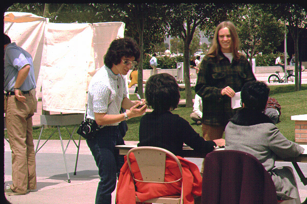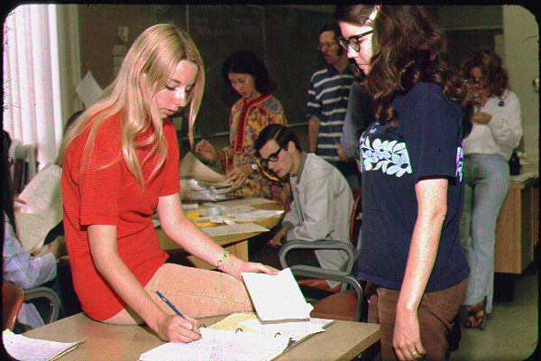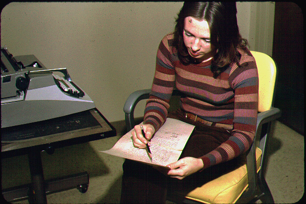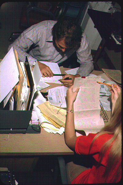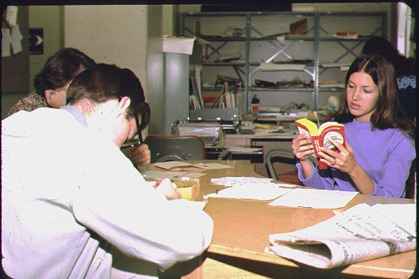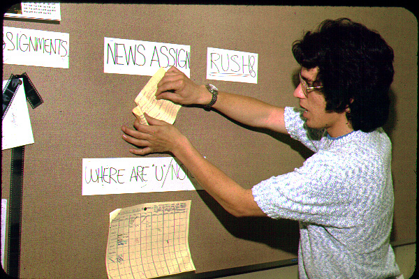 As a first step in producing the Daily Titan, an editor (Gail Rhea) makes