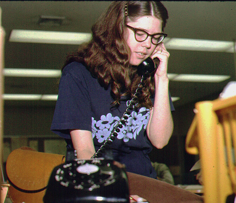 data at 56,000 baud--56 kilobaud). Jim Benson looks over the day's