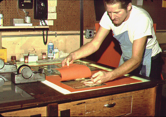 The negatives of the page are then stripped into a suitable mask for