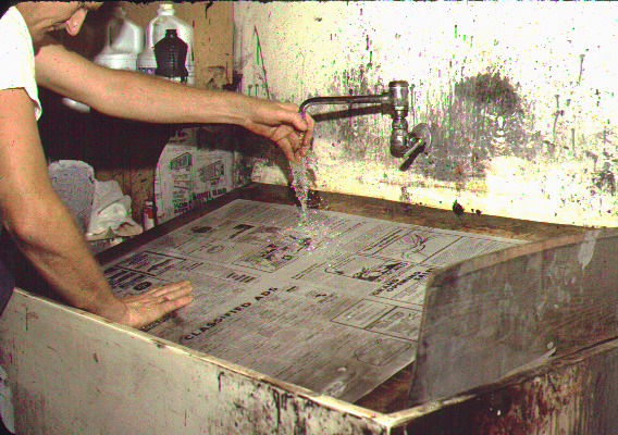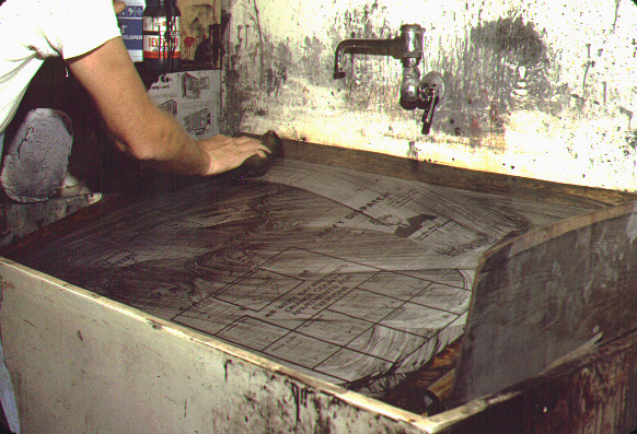 The offset printing plate is then scrubbed...