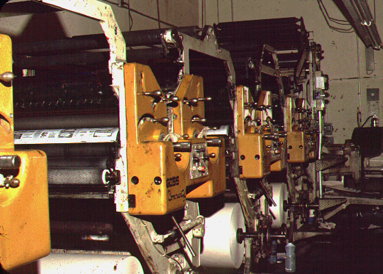 Finally, the offset plates are mounted on a Goss Community Press for