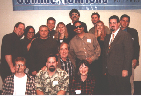 A group of 1990s Daily Titan editors posed with their faculty adviser.